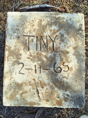 Tiny's memorial marker, uncovered after a storm at the Voelcker Homestead in Phil Hardberger Park.